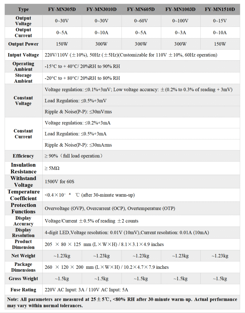 | FY-MN1003D | 0-100.00V | 0-3.00A | 300W |